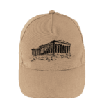 Βαμβακερό καπέλο Παρθενώνας σε 3 διαφορετικές αποχρώσεις, 100% βαμβάκι twill 150γρ. Κυρτό γείσο με 4 ραφές, σταθερό μέτωπο, 2 κεντημένες οπές εξαερισμού. Ρυθμιζόμενο κλείσιμο με αυτοκόλλητο βέλκρο στο πίσω μέρος του. Ανεξίτηλη ψηφιακή εκτύπωση στο μπροστινό μέρος ανθεκτική στο πλύσιμο. Εξαιρετική ποιότητα κατασκευής με ιδιαίτερη τουριστική εμπορικότητα ανεξαρτήτου περιοχής.